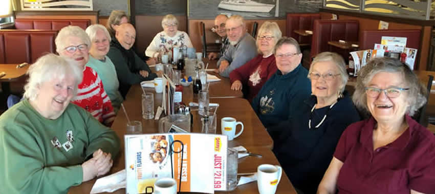 December 2, 2019, 2019 Class Breakfast at Denny's in Hudson Left to right: Jerry and Erlene Barriault, Kathleen Dahlman, Nola and Dale Gehn, Dick Nelson, Verda and Lee Davison, Anita Sundberg. Esther Nelson is not pictured - she was the photographer! ******************************** |