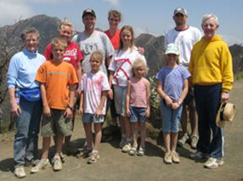 Frank and Marlyn's family picture - July 2009 - Mount Longonot in Kenya, Africa. Frank (far right in yellow), Marlyn (far left in light blue), son Brad (white shirt behind Frank), and daughter Brenda (center back). |