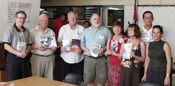 Karen Cole and other Canadians launching their books at a library in Santiago de Cuba, January, 2010 (with two Cubans). |