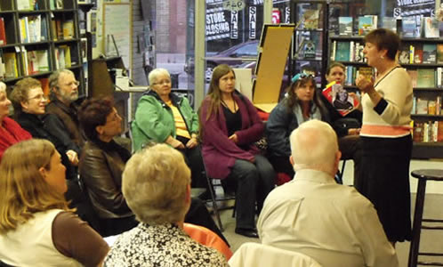Karen Cole giving a book talk and reading in Owen Sound, ON in September, 2010 |