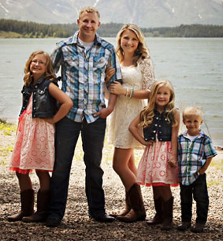 Son Erik and wife Tiffani Aanestad, Ava (4), Britta (2), and Sela (4) |
