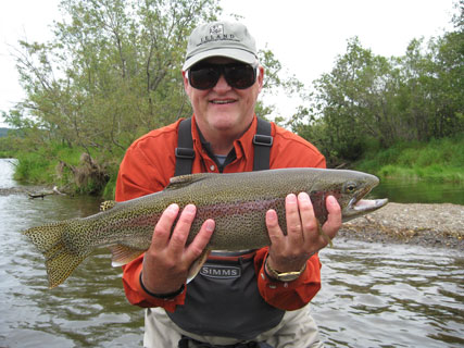 Dean fishing Rainbows on the Ozernaya River on the Kamchatka Peninsula, Russia in 2008. |
