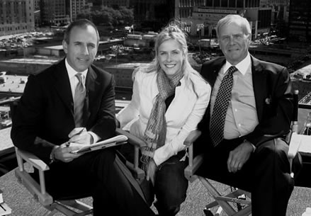 Matt Lauer, daughter Emily & Tom Brokow at NBC News at the Democratic Convention in 2008 when she worked with NBC evening news, |