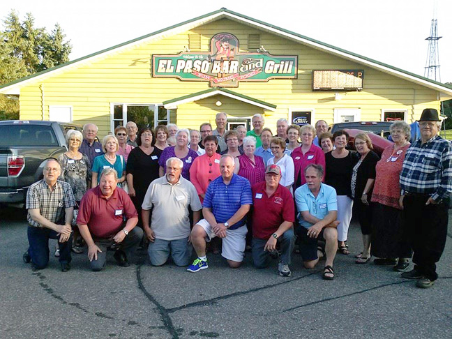Saturday, July 26, 2014 Front Row: Frank Farrell, Larry Sorenson, Roger Stein, Bruce Gunderson, Brian Miller, Barry Golden. Row 2: Carol Anderson Schilling, Marlene Stark Bartel Kautz, Bonnie Kittleson Richardson, Mary Kay Croes Schaffner, Mary Lou Zimmer Schwab, Judy Lynch Johnson, Linda Halverson Taylor, Mary Alice Grant Woiwode, Sandy Trealofff Hinzman, Luella Halverson Johnson, Maxine Finke Schaller, Don Zignego. |