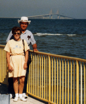 Irvin and Bess enjoying their winter in Florida - Sunshine Bridge in background. |