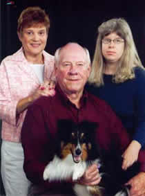 Dave holding family pet dog, Kirby. with wife Joan and Stepdaughter Kristin Epp |