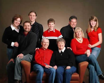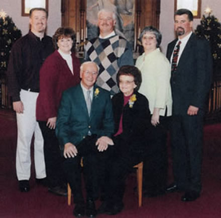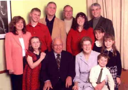 Bob and Carol Meier with their Family: From left- Daughter-In-Law Denise, Son Scott, Grandson Jim, Bob and Carol, Grandson Paul, Son-In-Law Kirk, Daughter Heidi, Granddaughter Nicole |