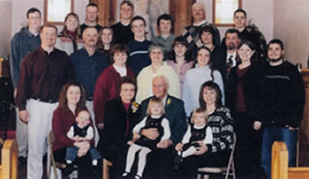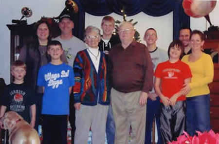 Son Eldon, and his family live in Indiana and this picture was taken last August (2007.) They have four children, all married, and nine grandchildren. Edith and Minnard are in this picture. |