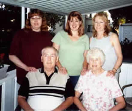 Front-Shirley with Granddaughters Kayla and Jannell. Back: Daughter Kristi Jo & Pat (husband) Shannon and Daughter Karen |
