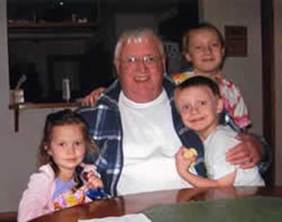 Dick with his three youngest grandchildren |