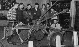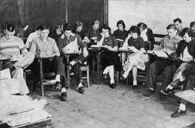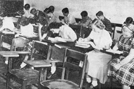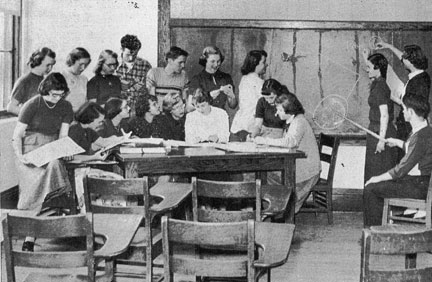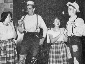 Friday, November 9, was Sadies Hawkins Day. The F.H.A. Club selected Senior Ruthie Thompson as Daisy Mae and Ruthie chose Bill Pence to play the role of Lil' Abner. During the day the girls had to dress in patched shirts and jeans. They had to open the doors for boys, let the boys leave rooms first, go first in the cafeteria line and give the boys the right of way. That evening, the girls had to ask the boys to dance and pay for their tickets and refreshments. The people dressed as Dog Patch characters for the dance. Verne Eakins orchestsra supplied the music and the F.H.A. girls served delicious cake and cocoa in the dining room. |
