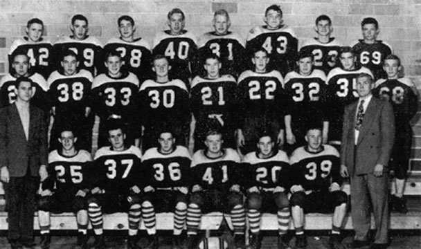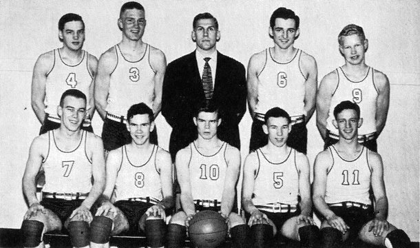 Basketball - 1952 First Row: James Danielson, Dale Brooke, James Duberke, Robert Meier, Richard Wood. Second Row: Richard Brooke, Harold Budd, Mr. Nelson, Coach, Wayne Voelker, Duane Olson. |