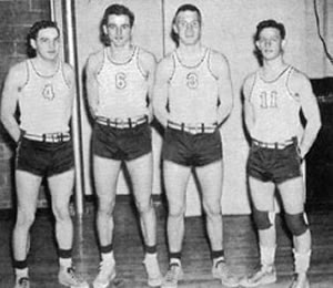 Graduating Basketball Players: Richard Brooke, Wayne Voelker, Harold Budd, Richard Wood |