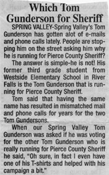 The following news clipping appeared in the Spring Valley Sun/Elmwwood Argus two years ago.