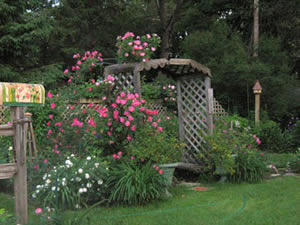 Small corner of Darlene & Tim's yard - a part of Darlene's roses, where she spends a lot of time. |