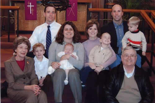 Daughter Cheryl and her husband Ivan Carlson with their children: Mike (13), Alex (1) and Madeline (7) |