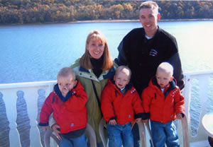Daughter Chris and her husband Matt with their triplet sons, Aaron, Mitchell & Jake |
