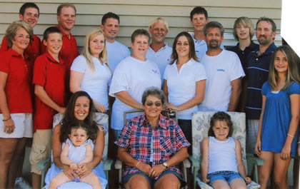 Doris with her family in 2008 Steve's family in white Karla's family in red Scott's family in blue |