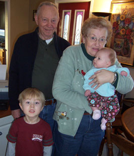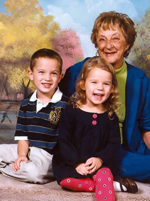 Peg Madson Olson with her two youngest grandchildren, Michael & Maggie. "They are the light of my life." |