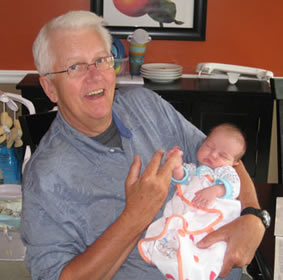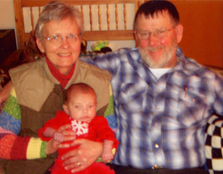 Leon and Judy Dent Kirkhoven with their first great grandbaby girl, Jayden Leigh |