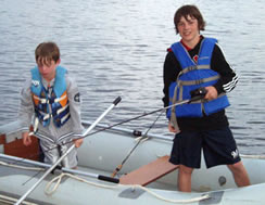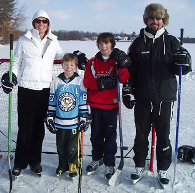 Son Scott and his family, Deb, Zach & Tanner. Playing hockey on Lake Holcombe |