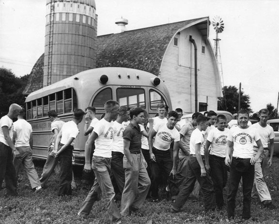 After several years during which the Spring Valley FFA Chapter won the state-wide Farm Safety Award, the chapter was asked to star in a movie being made for the John Deere corporation. The movie was called "The Safety Pin" and shown at the 1955 John Deere Days events produced by local dealers. It was filmed on a farm near Glencoe, Minnesota. |