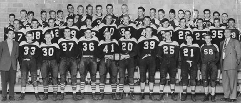 Front Row: Mr. Cardinal, Bob Rutherford, Jerry Mattison, Leonard Snyder, Bob Brooke, Harold Aamodt, Dick Brooke, Harold Budd, Dick Wood, Bob Meier, Roger Brandt, Mr. Nelson 2nd Row: Minnerd Hojem, Tom Meier, Dick Weghorn, Arnie Harrison, Joe Thome, Jim Price, Duane Olson, Bill Stein, Jim Duberke, Dale Brooke, Don Adank, Irv Vanasse, Don Croes. 3rd Row: Quentin Hurtgen, Don Bemis, Ralph Ducklow, Bob Bunce, John Jacobson, Floyd White, Don Snyder, Gary VanDeList, Tom O'Keefe, Dick Wilhelm, Dave Madson, Larry Bune, Jim Sands, Wayne Lynum, Dick Timm, Barry Moran, Darrel Krenn, Vic Langer, Jim Rutherford, Jerry DeLong, Don Johnson, Dan Traynor. |