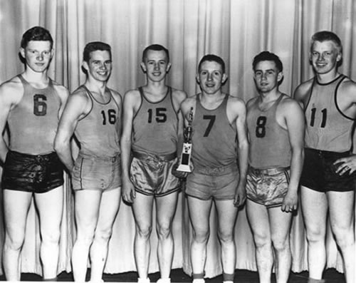 1955 Regional Champions Gary VanDeList, Dave Madson, Jim Rutherford, Dick Wilhelm, Ralph Ducklow, and Dick Timm |