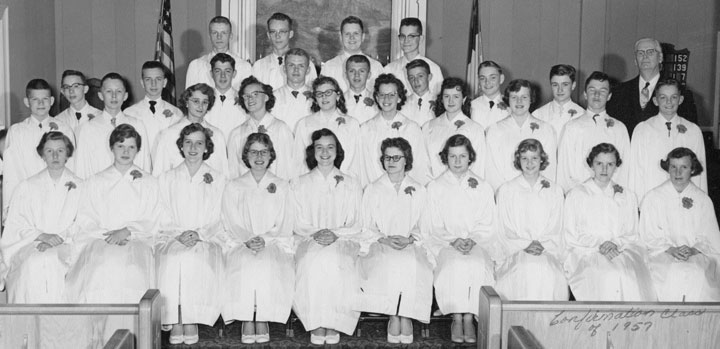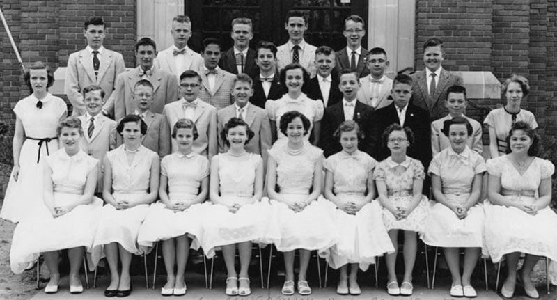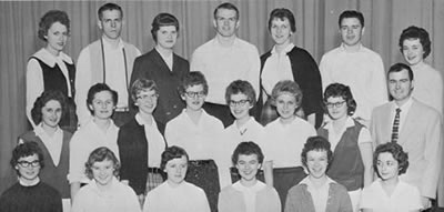 8th Grade Graduation Row 1: Judy Olson, Carol Kearns, Judy Thompson, Jean McClellan, Karen Haddow, Karen Sandvig, Inga Jahr, Judy Zimmer, Judy Olson. Row 2: Judy Dent, Ed Jahr, Win Hansen, Wesley Wentlandt, Terry Wulf, Margie Dahms, Carl Safe, Reese Ofstie, Ross Tapin, Peg Spangler. Row 3: Bernard Hampton, Richard Ducklow, Jim Odahlen, Roger Wolske, Larry Whirry, Bill Klanderman. Row 4: Kent Miller, Lyle Christopherson, Mike Reid, Steve Madson, Larry Olstad. |