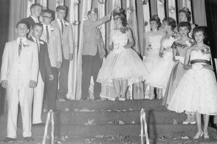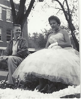 Homecoming - Fall of 1959 King Gail Lynum and Queen Bonnie Koehler Seniors - Class of '60 A Note from Bonnie: I was chosen Homecoming Queen that year. What an honor that was for a little girl from a very poor family!! Lucky I had the bridesmaid dress from my sister's wedding to wear -- no money for a new dress. |