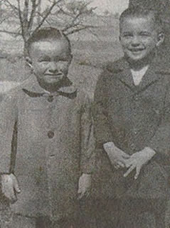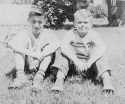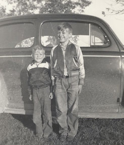 Wes Wentland and his brother, Butch I donÕt have a picture of the car that my Uncle Butch and my dad, Wes, used, but I have a great photo of them when they were 4 and 6 back in 1948. This is just around the time that my Grandma Helen asked them to go out to the field to pick potatoes. They didnÕt walk out to the field or use the tractor; oh, noÉthey used the car to get out to the field, pick the potatoes and bring them back to the yard. |