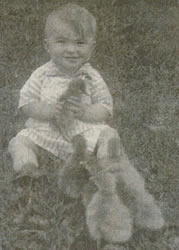 ÒI was hunting high and low for the attached photo after seeing the horse and goat-wagon photos. I couldnÕt find it; you know, it is in that special place in the house where everything else goes so I wonÕt forget. ÊÊÊÒI was at my grandparentsÕ house today and borrowed their photo. ÊÊÊ ÒMy dad didnÕt grow up in St. Paul, but on a farm in Spring Valley, Wisconsin. My grandmother took the photo of my dad, Wes, and his ducklings. No need for professionals here; my Grandma Helen created her own works of art! ÊÊÊ ÒI hope you can share it with our fellow BBers. My dad turns 64 today. Happy birthday, Dad!Ó |