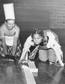 G.A.A. The G.A.A. was engaged in many athletic activities again this year. Theyheld interclass tournaments, with the senior class coming out on top. The officers were: President Judy Thompson, Vice President Judy F. Olson, Secretary Darlene Lynum, Program Co-chairmen Ruth Gilbertson & Janet Ducklow |