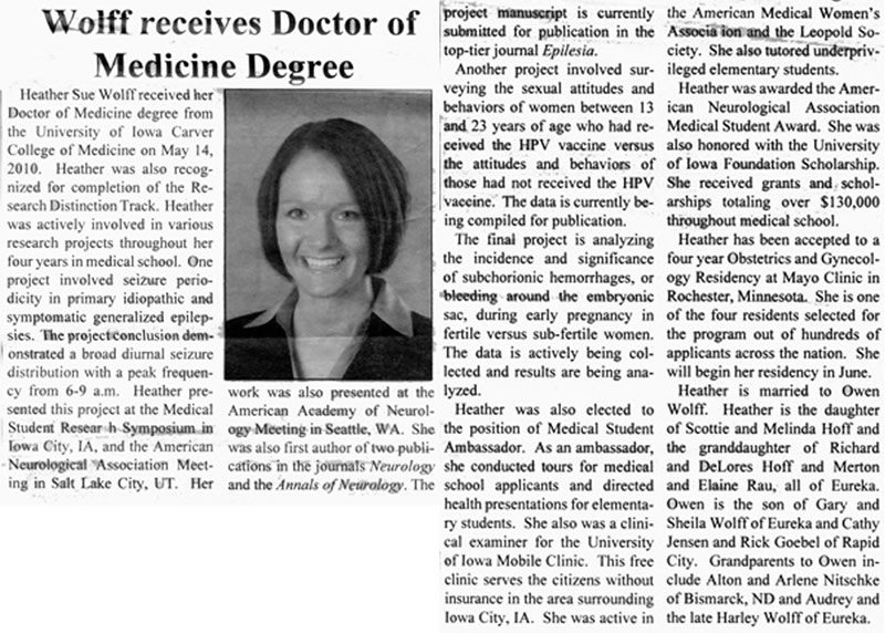 A newspaper article about our granddaughter Heather: